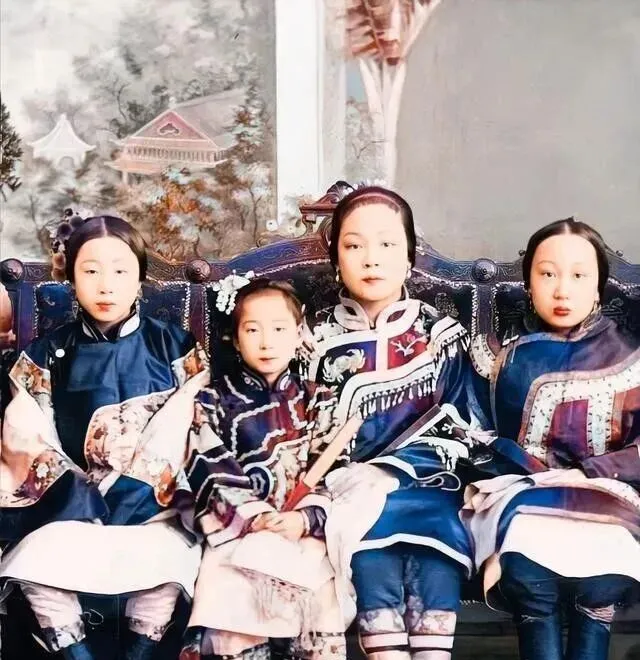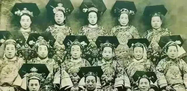 这些是宫里的女眷,穿着花纹繁复的衣服,戴着头饰,看起来挺讲究,可长相嘛,怎么说呢,跟电视剧里差了十万八千里,清朝选妃看的是家族势力、血统、政治联姻,长相排不上号.