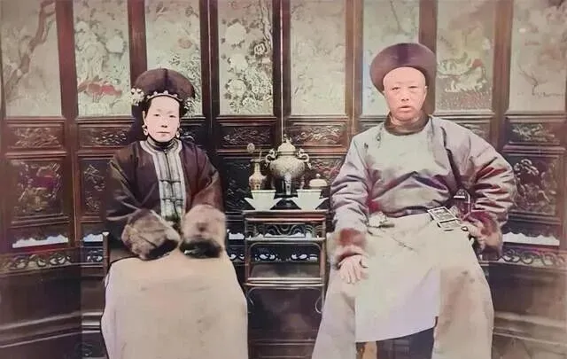 这对夫妻坐在椅子上,女人梳着发髻,男人穿着长袍,背景是精致的屏风,一看就是有钱人家,可就算是有钱人,那个年代的包办婚姻,也谈不上什么幸福.