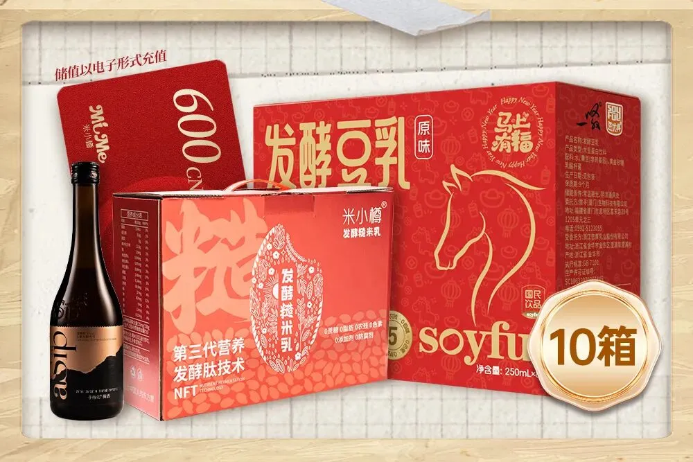 含600元MIME储值卡+豆优典发酵豆乳(原味)10箱+米小樽发酵糙米乳1箱+Asip寻梅记全果肉发酵青梅酒1瓶