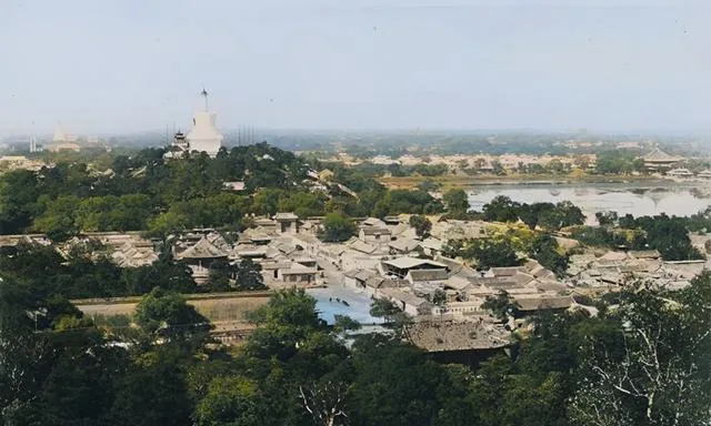 这个角度少见,白塔在树海里冒头,湖面像一块玉,岸线弯弯绕绕,远处院落层叠,风一过,树梢晃着光点,那时候公园刚开放没几年,票价不贵,带着烧饼在湖边坐一会儿,连风都是甜的。