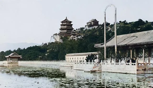 湖面铺着大片睡莲,岸线是细白的石栏,远处佛香阁立在半山腰,亭台一层压一层,小时候跟爸爸坐画舫,船尾的桨一划一划,水纹把光打碎,回到家脚底下还晃呢。