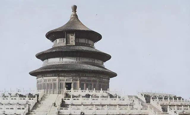 圆形三重檐,蓝灰色的瓦面在太阳底下发着冷光,台基层层叠叠,石栏板一路压下去,孟春祈谷的规矩在这里留着影子,台阶上走两步就得停一下,气口得缓一缓。