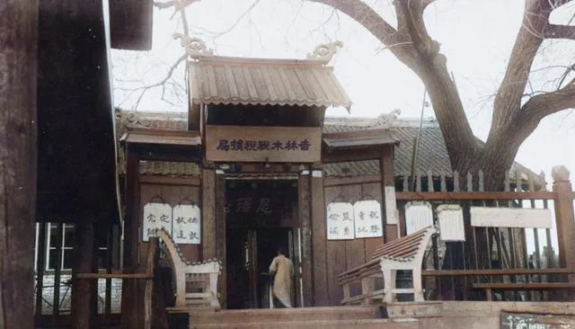 这个木牌楼门额写着木税税捐局,松花江上游漂来的木材在此过税,门前木栈道咔哒响,一根根编号打上,文书拿着账本比对,老一辈最讲规矩,收支清清楚楚。