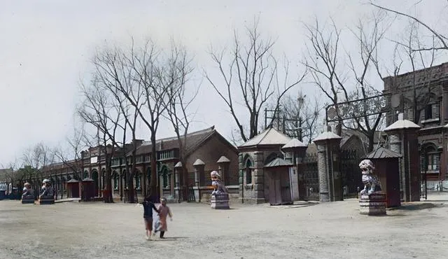 这片大院门口立着石狮,广场空空的,孩子牵手从中间跑过去,影子拖得老长,墙体全是砖石结构,窗楣呈拱形,岁月在边角处磨出圆润,一看就知道当年气派很足。