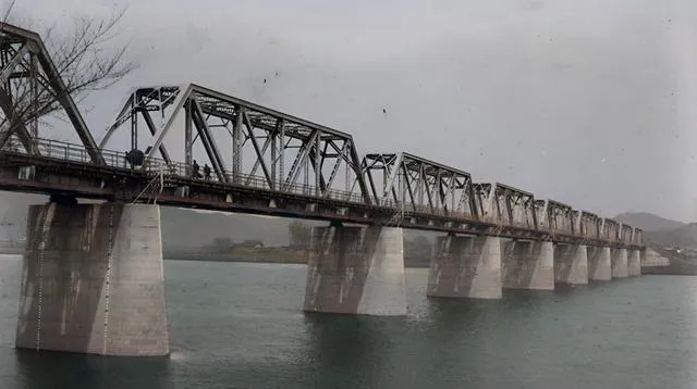 这一溜儿钢梁就是吉敦铁路大桥,三角桁架层层叠叠,火车轰隆上去,桥身像被巨兽踩着节拍,爷爷说当年桥被炸过,后来又修好,桥就是这样,挨过风雨还得把路连起来。
