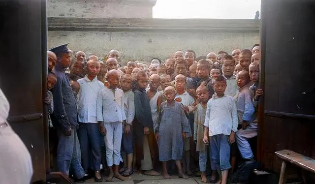 院门口挤满了孩子,头上刮得精光,眼睛乌黑发亮,后头站着几名身穿制服的卫兵,大家都好奇地往镜头里凑,那会儿有外人来,整个巷子都会被“看个稀奇”。