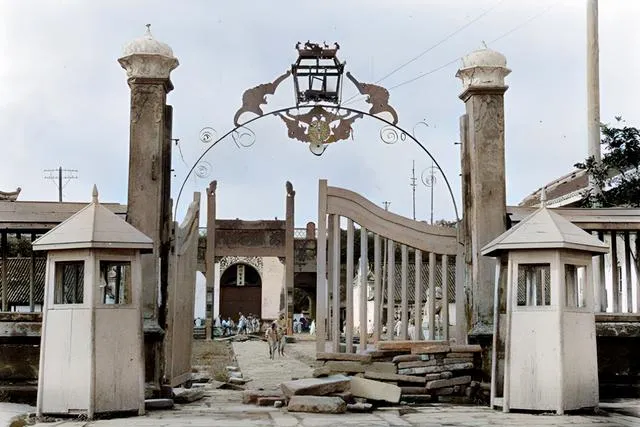 这个西式的门楼,当年就是法国领馆,铁门歪着开了一扇,门前落了几块板砖,传下来的说法是军阀混战时被误炸,花架上那盏灯成了孤零零的记号,以前成都城里藏着洋气一角,现在只剩故事给我们补缀。