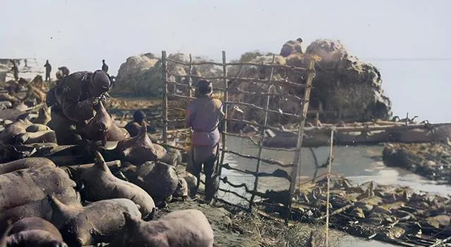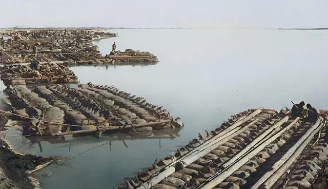 这个画面真壮观,几十只皮胎捆成的排子并排趴水面,绳结密得像鱼鳞,最前头系着长篙,水手只要一点水性,顺流能把货送到很远的地方。