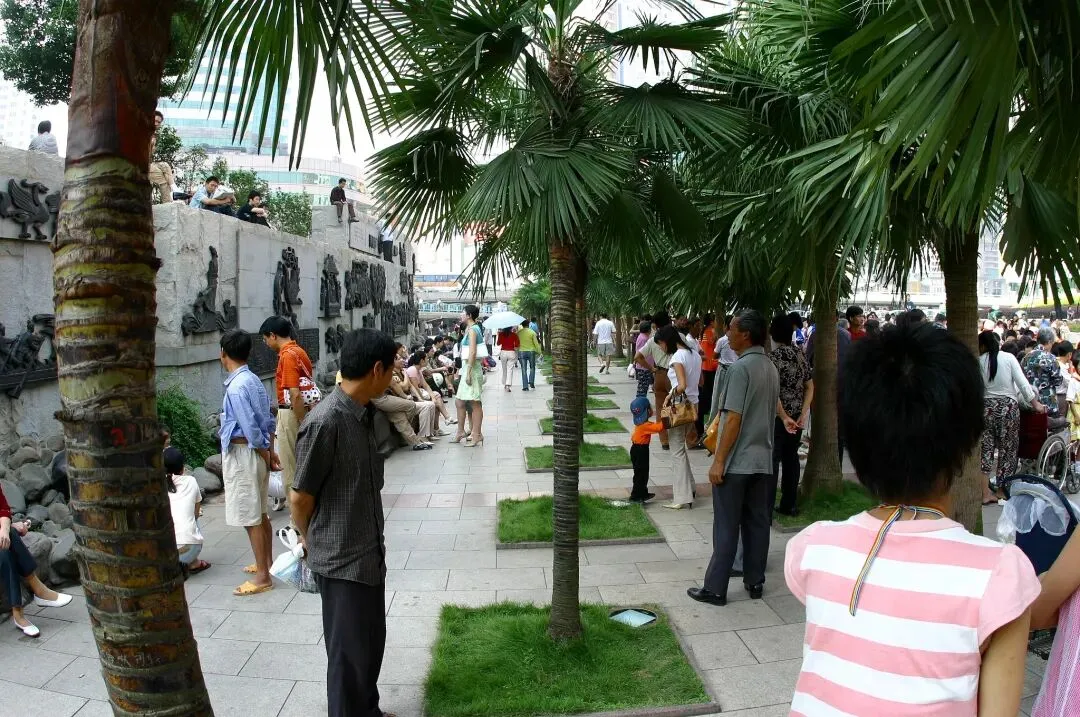 2004年9月12日,长沙五一广场,市民有的在看戏有的在发呆,有的在歇凉有的在聊天,有的在看热闹有的在带小孩,整个广场温馨又和谐。