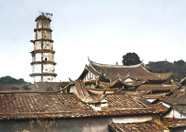 90年前福州老照片:女子头上插三把刀, 白塔镇海楼前没有游客。
