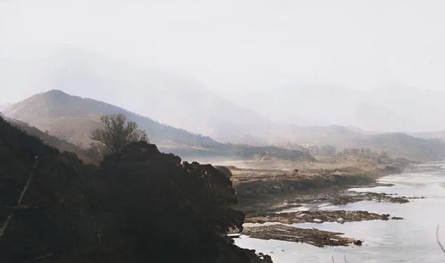 山影叠成几重,江道绕着滩涂慢慢拐,水鸟贴着水面掠过去,留下一道浅浅的痕,天地之间只剩风声和水声。