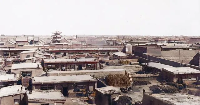 站在城墙头往里看,土屋顶连着土屋顶,院子里柴垛摞得比人高,远处忽地冒出一座三层古塔,飞檐挑起,像个稳当的针眼把天与城缝在一起,老辈人指给我看,说那边是清真寺的方向。
