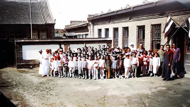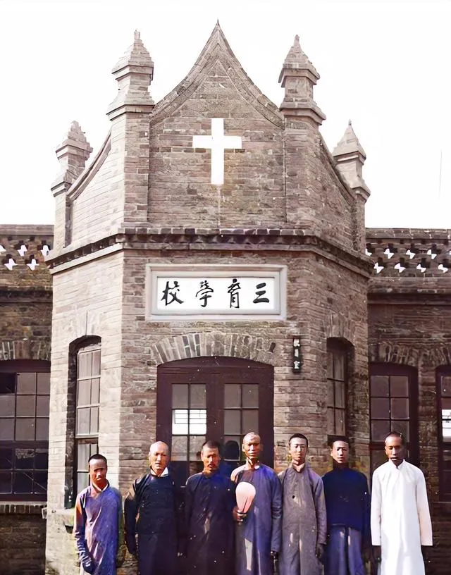 这个砖砌的教学楼叫三育学校,大门上头嵌着“三育学校”四个字,屋角立着十字架,老师们穿长衫站成一排,身后窗子擦得透亮,外来先生混在队伍里也不突兀,城里人那会儿对新鲜事物既好奇又谨慎。