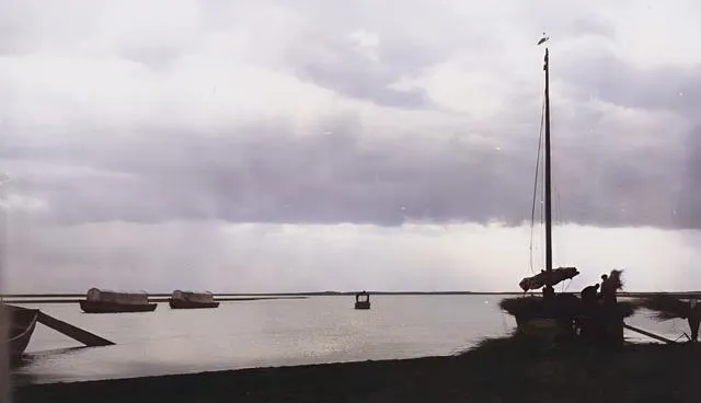 这一带是小商埠,船头挤着装货的人,岸上有人招手,有人抬担,水光把人影拉得老长,等一阵风过,帆鼓起来,船就缓缓离开。