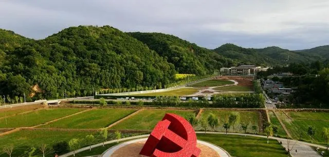 图中这片开阔地,就是当年的南泥湾入口,绿坡连着平川,正中一处醒目的标志立着,像给后来人指路的灯塔,以前这里多是荆棘和荒草,现在铺成了规整的田畦和大道,变化就这么明晃晃摆在眼前。