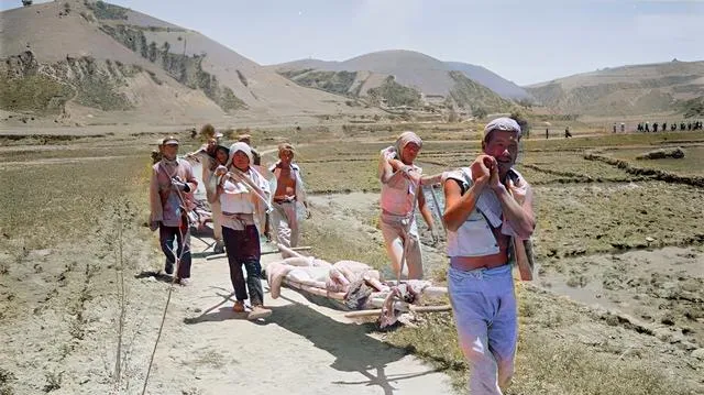 这一队人抬着担架往回走,肩头勒出深痕也不吭声,前面的人回头招呼一声,后面的人就加一把劲,妈妈说,那个年代军民一条心不是口头话,真要紧的时候,乡亲们自己把路踏出来。