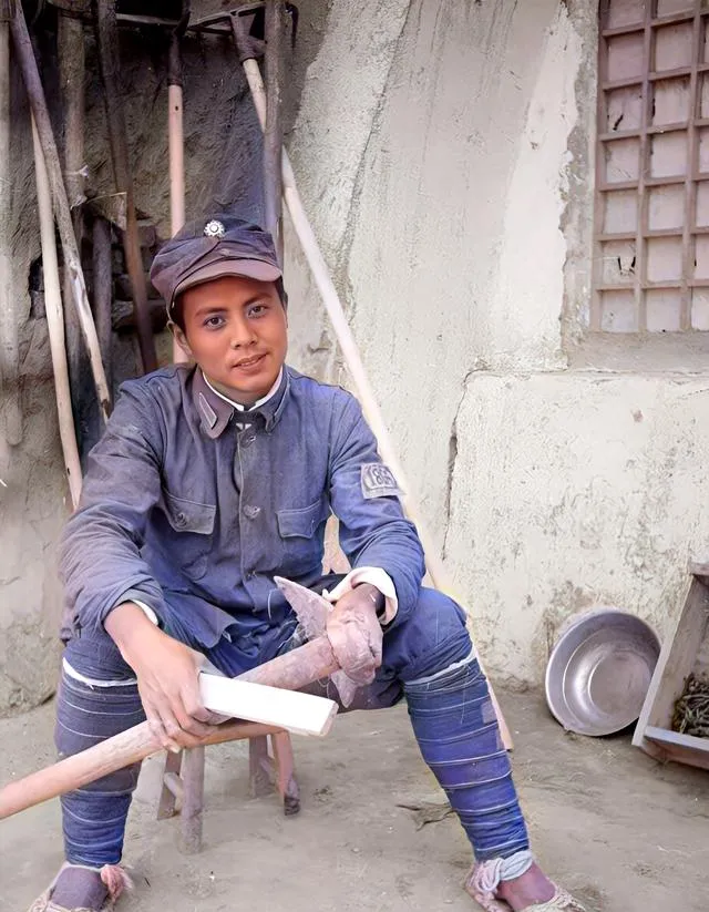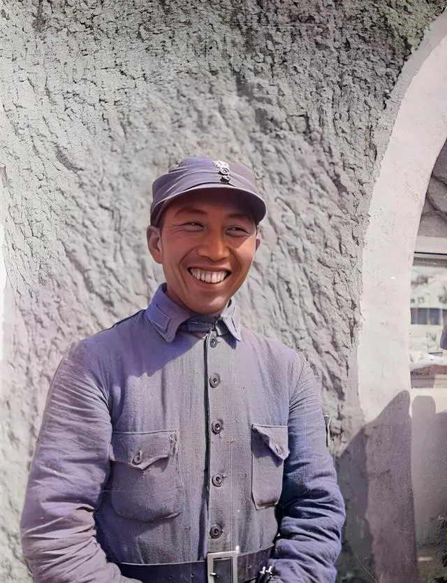 这个小伙子笑得有劲,牙齿白白的,灰蓝军装扣得齐整,站在窑洞拱门边,风从沟里钻过来,吹得衣襟一鼓一鼓,他说不怕冷,动起来就热乎了。