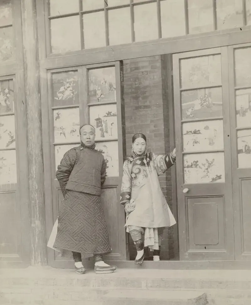 这个门口的合影看着有点别扭,女人衣料光亮,脚下小鞋尖尖的,男人站在侧边不卑不亢,窗格子里的画片一幅接一幅,像在暗示来路与去处,妈妈低声说她们图个生计,愿意和客人公开合照,多半是为了招徕,时代把人推到风口上,体面与无奈就挤在同一张照片里.