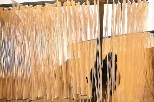 这个长长的架子上挂满细面,风一吹就像麦穗轻轻摆,我小时候最爱凑过去看,做面的师傅拿竹梢挑一把,手腕一翻面条就散得均匀,等全干了切成短段,装进纸袋一抓就能闻到淡淡的面香,现在机器干活快是快,少了这点手上的温度。