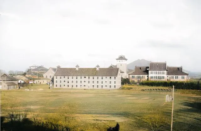 这片空地是足球场,白色球门立在那里像两扇小门,远处塔楼尖尖顶,欧式墙面规矩得很,老师说那会儿的校园爱种梧桐,夏天树影一落,整条路都凉下来了,现在还会在校门口望一眼那排老树,心里格外踏实。
