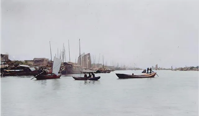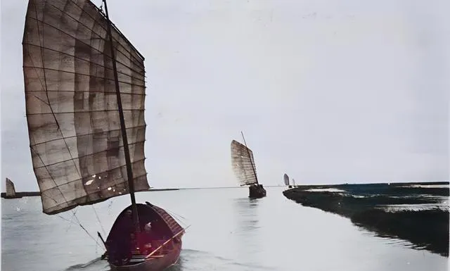 江上船来船往,桅杆排成林,风把帆鼓起来,船身斜着切水线,船工摇橹的背影稳稳当当,从九江到上海的路都在水上铺开,货到码头,人到江边,生计就有了着落。