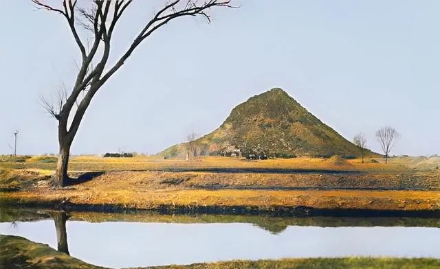 孤峰像插在平地上的青锥,坡面光整,树影稀疏,水塘把山倒过来照了一遍,李白的句子老早就传开了,“绿翠如芙蓉”,这一看也确实贴切。
