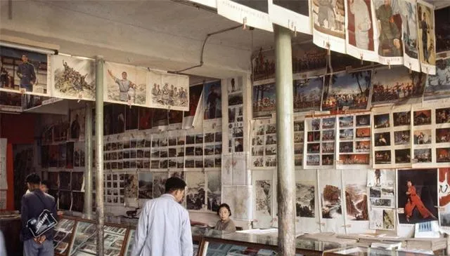这家铺子墙上挂满了年画与挂历,绳子从中梁上穿过去,一溜溜垂下来,玻璃柜里摞着册页和明信片,伙计坐在凳子后打算盘,顾客挑了又挑,翻着角看印色够不够艳,买回家一贴,屋里就亮堂不少。