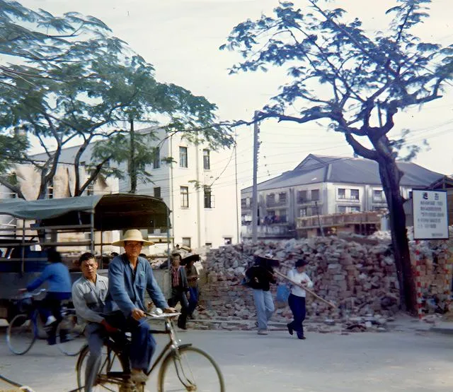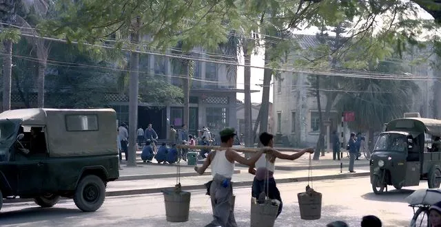这条街上既有绿色吉普车,也有赤膊挑着木桶的挑粪人,肩上的扁担因为用得久,边缘被汗水磨得发亮,后面跟着一辆带篷三轮,发动机哒哒响,两种节奏混在一起,就是那个年代的底色。