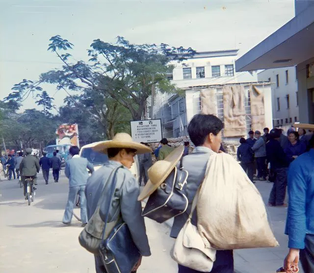1979年深圳老照片:看上去像个小县城,打工者背蛇皮袋找工作。
