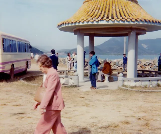 这个奶油色带粉条的旅行车很眼熟,照片里有外来的考察团在取景,亭子下的人边聊边笑,风一吹过来,海面泛着亮光,那时的深圳还像个过路点,客人们下车看看便走,谁能想到后来他们再来,得仰着头看一线城市的天际线。