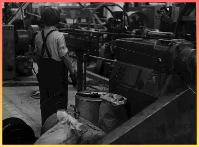 工.厂里的女工正在.操作机床,那个年代讲究妇女能顶半边天.。昏暗的车.间里,专注于手头工作的背.影,是那个工业建设初期最美的风.景线。 每一颗螺丝钉,.都.拧紧了国家前进的.动力。