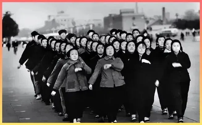 这一群穿着棉.袄,动作整齐划一的人们.,应.该是在进行某种集体操练。那个年代的集体主义精.神.特别强,大家心往一处想,劲往一处使,那种团结的力量,隔着屏幕都能感受到.。