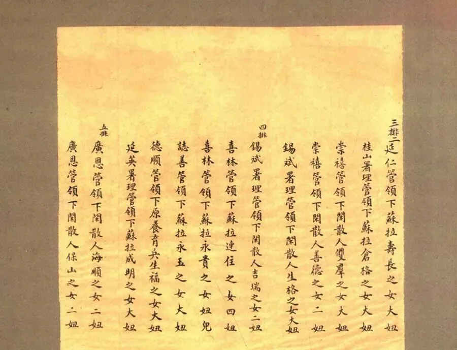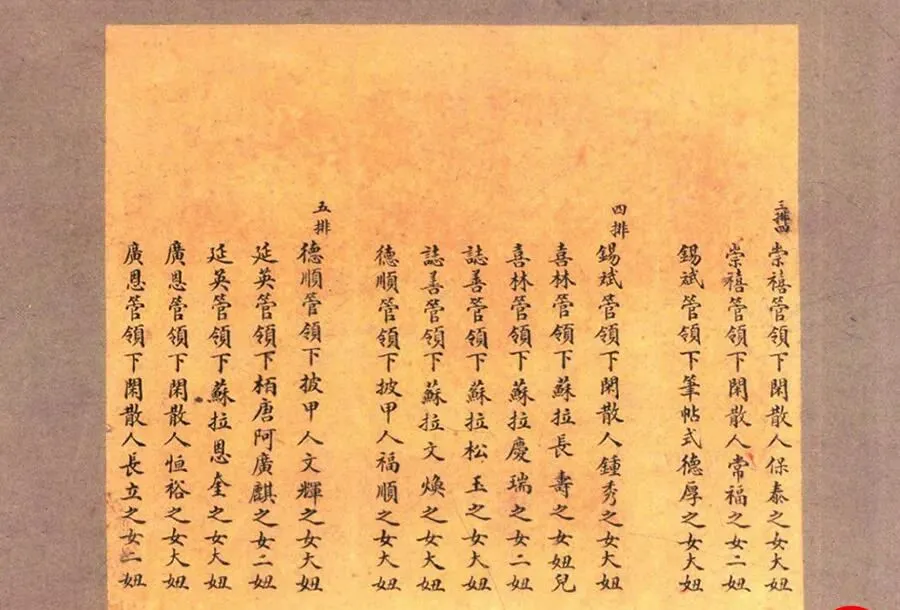 这个泛黄的册页叫名单,纸张发脆,墨迹还算清楚,竖排小楷一列列写着旗分与姓名,夹在夹板里由户部官员保管,奶奶说,“留牌子的在这上头,撩牌子的也记着,省得走漏.”.