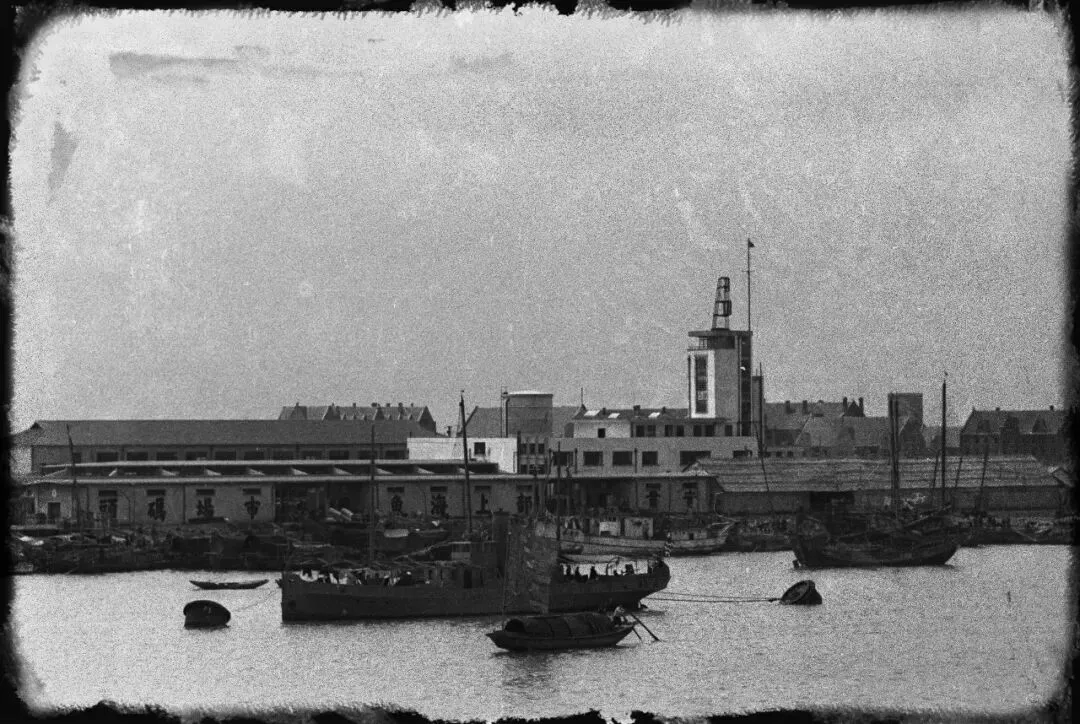 面上密密麻麻地停泊着许多舢板、渔船和小型货船,这些船只不仅是当时的运输工具,也反映了上海作为港口城市的繁荣,