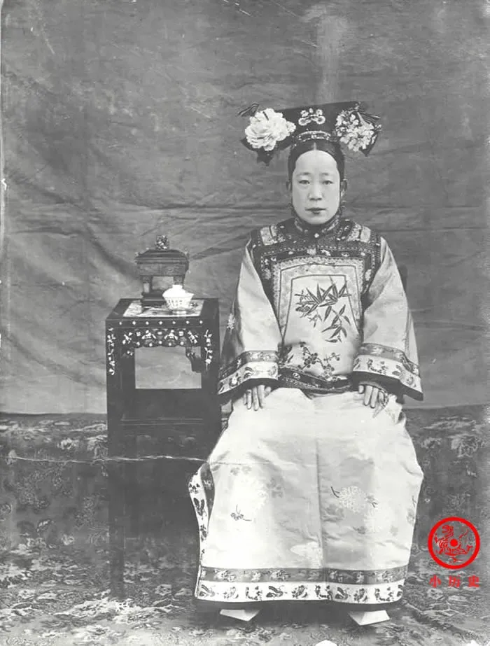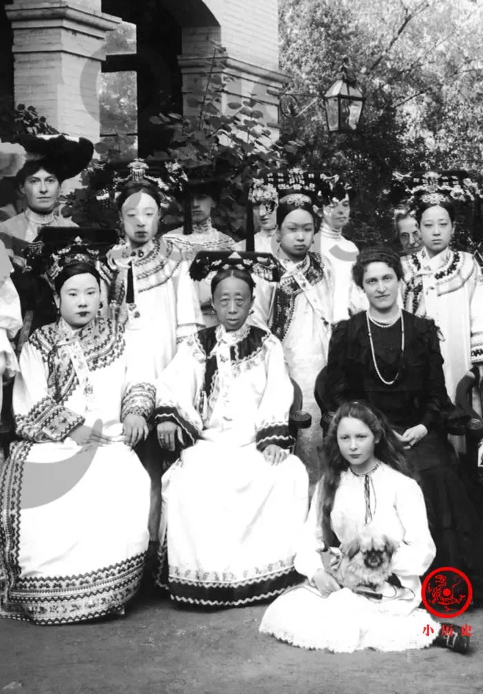 前排中间坐着的那位就是荣寿固伦公主,她是大清王朝的最后一位公主。她出生在恭亲王府,按清朝制度只能封为格格。但她被慈禧太后接到宫中抚养,获得皇女身份,因此也就有了做公主的资格。