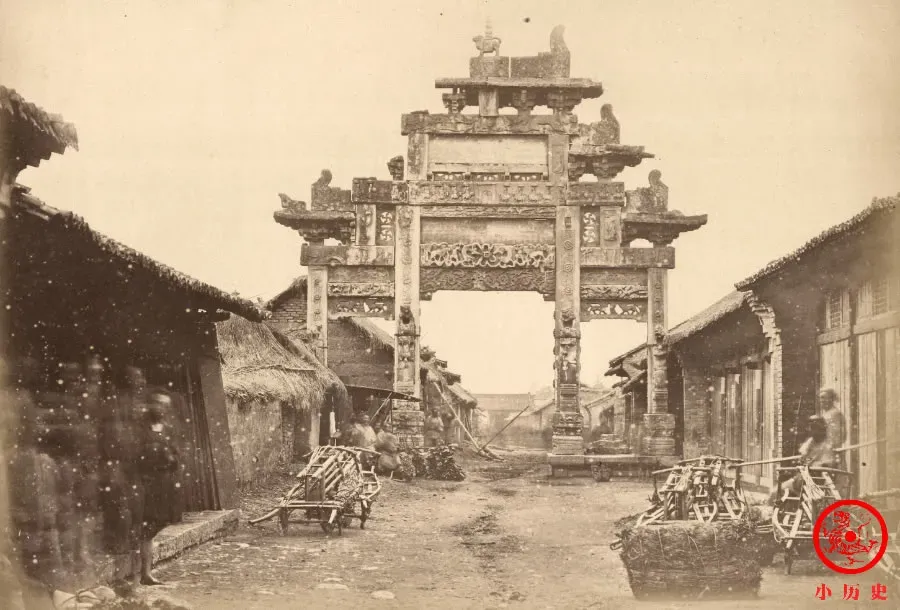 牌坊用石材建成,横跨一条冷清的街道,已有部分破损,看上去历史悠久。拍摄者记录说这座牌坊建于汉代,我觉得不靠谱。