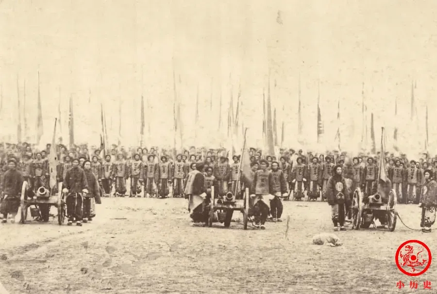 左宗棠经略西北15年,立下赫赫战功,确保了中国西北疆土的完整。其麾下部队以老湘军为主力,外加河南的嵩武军、四川的蜀军、陕西甘肃两地的八旗军和绿营,共有马、步、炮兵150余营,合计约7、8万人。照片中的炮队军容整肃,有较强的战斗力。