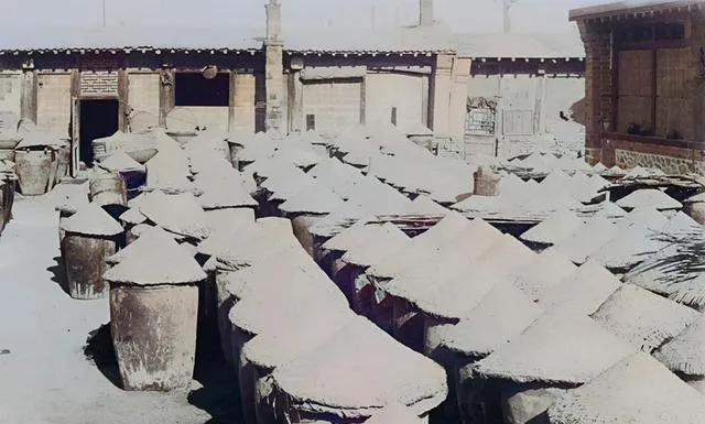 这一院子的缸都是腌黄瓜的家伙,巨大的陶缸一字排开,缸口盖布鼓鼓的,晒到午后,布面泛着盐迹白印,师傅揭开盖子,用长筷拨一拨,酸香就往外蹿,奶奶说,以前没有冰箱,一坛子能吃一个冬天。