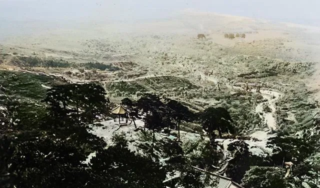 这一张把城与山一起搁进取景框,屋脊一行行排到远处,天边压着淡灰的云,像要下不下的雨,风把尘卷起来又落下去,想到现在的天气预报一小时一更,当年可全靠看天吃饭。