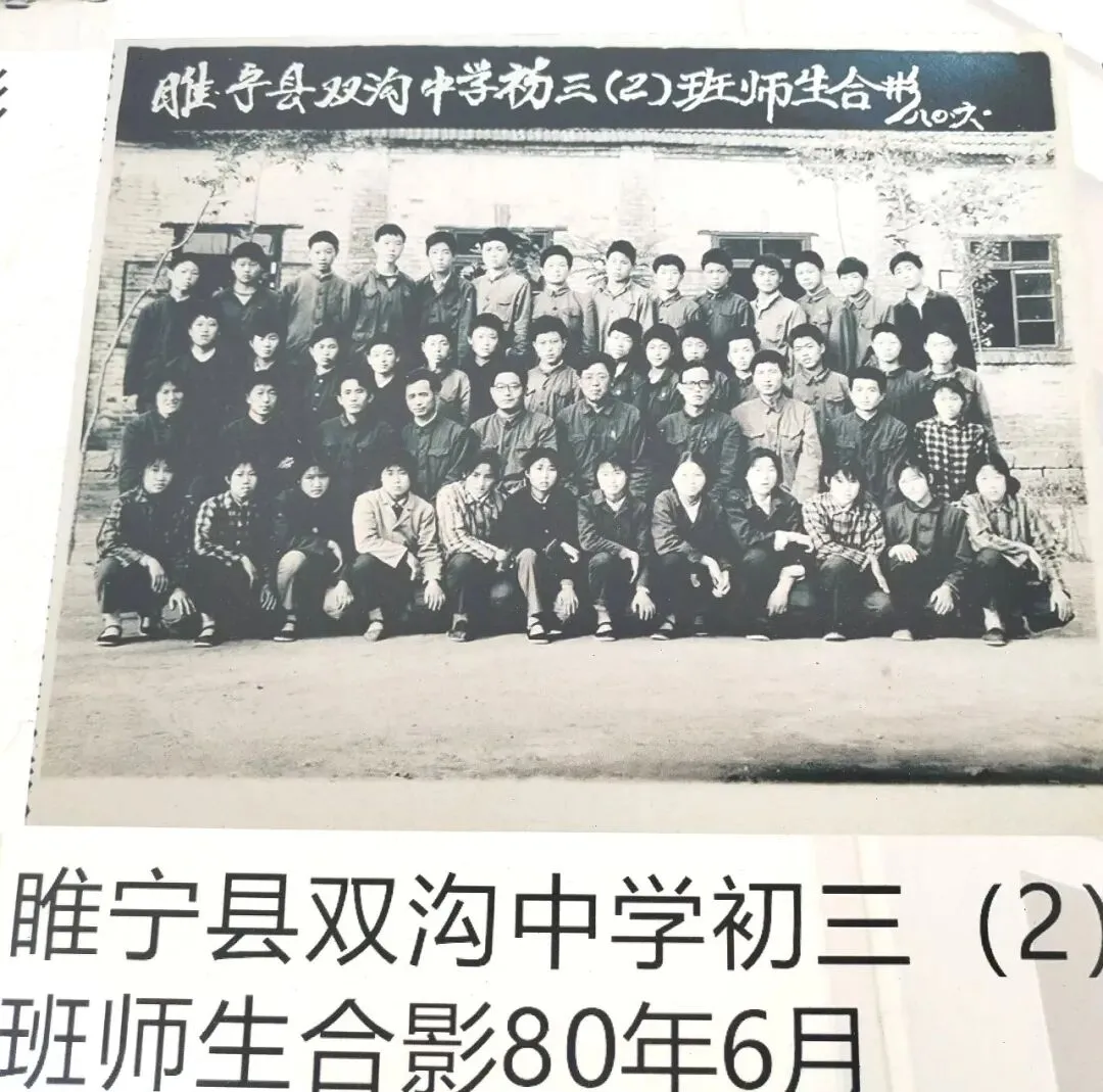 【老照片说明】这张合影拍摄于1980年6月,定格了双沟中学首届十三年制初三(2)班的师生群像。朴素的红砖瓦房校舍,带着乡土的亲切与温暖,见证了我们的青春过往。彭成道老师端坐二排左二,笑容温和,目光里盛满对少年们的期许与祝福;全班同窗身着整洁服饰,男生一袭中山装尽显沉稳,女生的衣衫虽经洗涤却干净平整,青涩的脸庞上,满是少年人的热忱与懵懂。或抿唇浅笑,或直视镜头,或略带拘谨,一帧影像,锁住了盛夏的清风与美好,也留存了双沟中学办学史上这一标志性班级的青春模样,成为一届师生最鲜活、最珍贵的时光佐证。