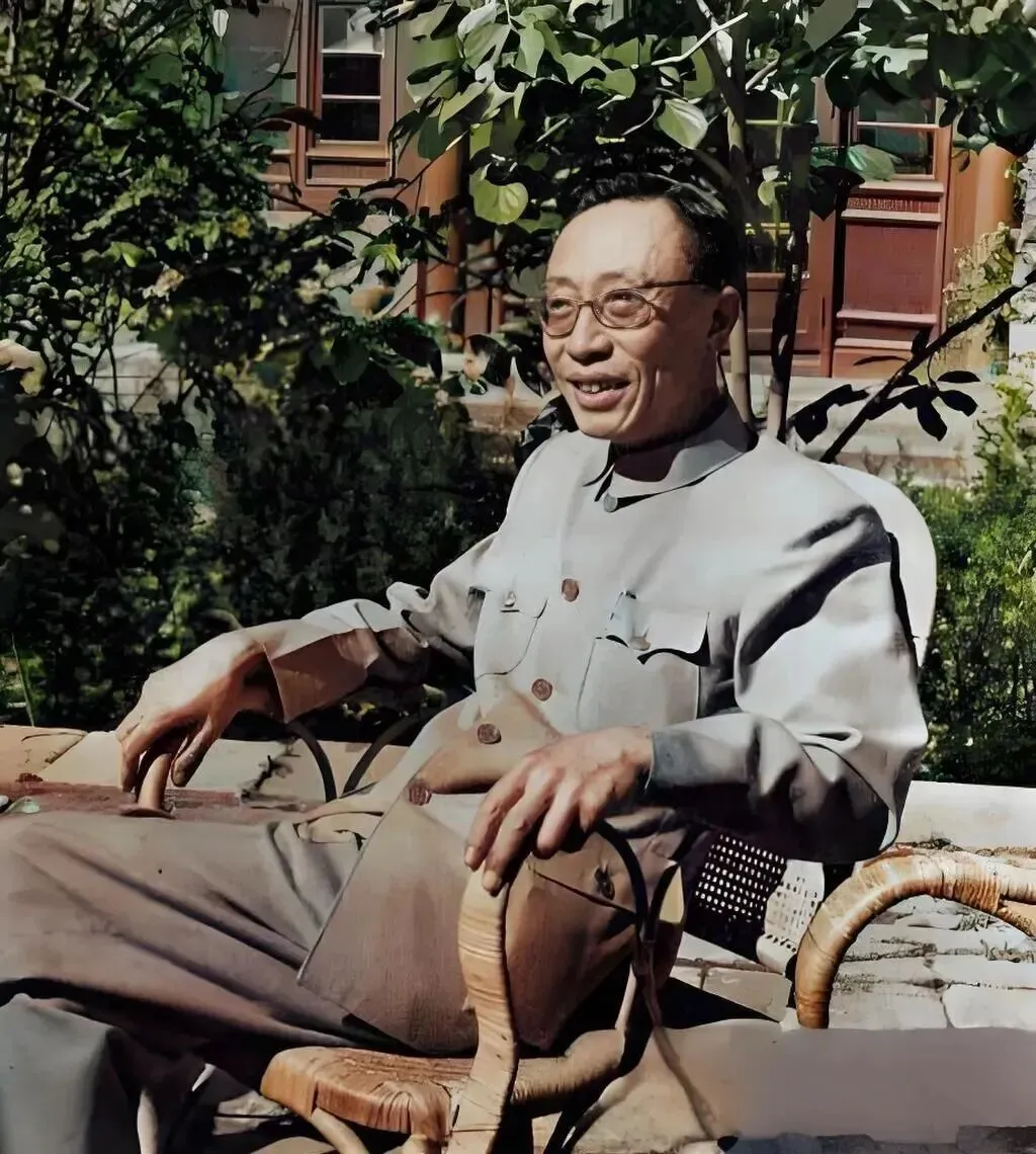 溥仪静静地坐在院中的藤椅上,鼻梁上架着一副深度眼镜,身上穿着整洁的中山装,上衣的左口袋里,一支钢笔稳稳地插着,周身散发着一种温润儒雅的气质,与那个时代的知识分子毫无二致。
