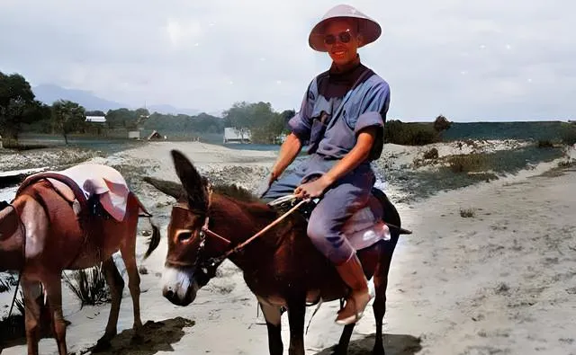 图中这条沙沙作响的路,最常见的就是毛驴,驮着人也驮着货,草帽一戴,腿一夹,驴耳朵一抖就上路了,老辈人说从海边往关城走,清早出发不晒头,赶在太阳正毒前能到市口,脚上穿的都是草鞋或布鞋,轻巧耐磨。