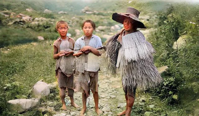 照片里的人披着草编的蓑衣,草帽檐子宽,三个身影立在山路口,手里攥着镰刀,刚从地里出来的样子,脸被风吹得红里透黑,眼神却有劲儿,像刚咬下一口硬馍那股子坚韧。