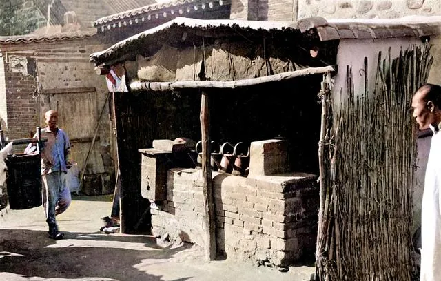 厚厚的门洞像口井,天光从里头往外倒,男人们顶着帽子,女人抱着孩子,边上摊贩支着小炉子烤红薯,香味顺着风就飘了出来。