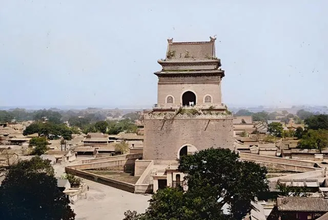 图中高耸的城楼就是鼓楼,灰砖厚重,檐角翘起像展翅的鸟,城下屋顶一片片铺开,像鱼鳞一样闪着浅黄的光,老辈人说,从鼓楼往下看,钟点一到,街上商贩齐齐收摊或开张,节奏全靠这一口钟声。
