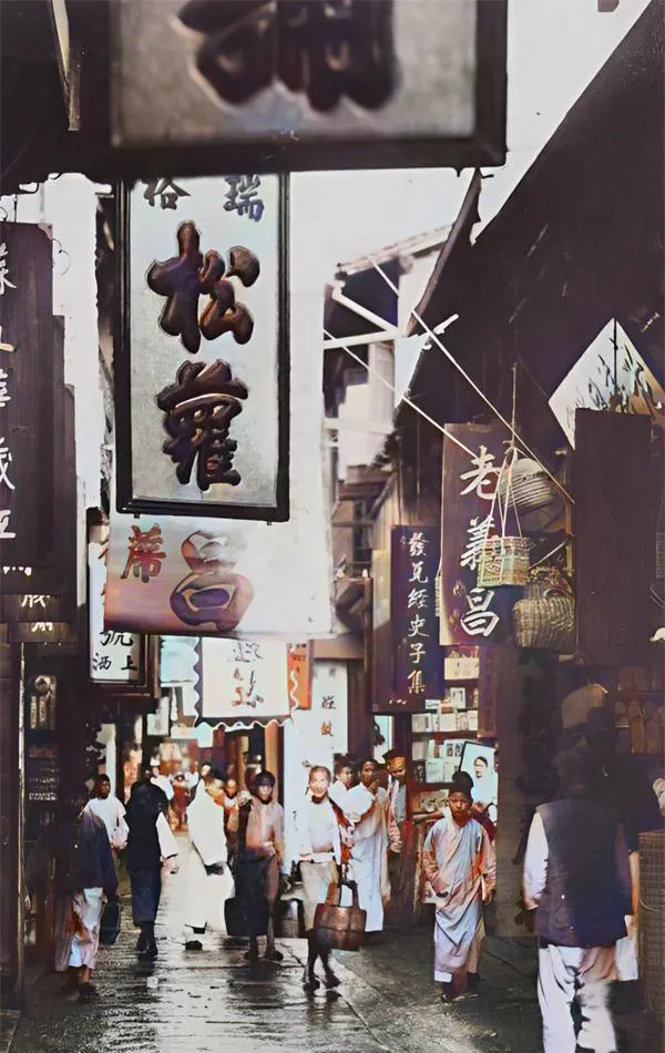 看这条街,店招一块接一块,字样各有讲究,松罗、永泰、老字号的名头在风里摆动,雨后地面微亮,行人提着布袋快步穿行,招牌比人还热闹,抬头就能认出哪家是茶铺哪家是布庄。