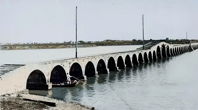 这条桥一孔接一孔像串珠,平展着横穿过河面,远远看去像一条长带压住水纹,风一来,桥影断断续续落在水上,船从孔下穿过,仿佛给岁月打了个结。