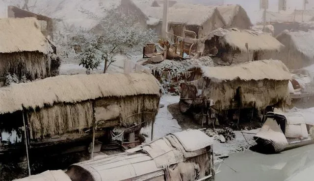 看这一片靠江的草棚和小船,席篷一圈圈裹紧,船上就是家,一锅一灶一盏油灯,夜里水拍篷沿的声音当催眠曲,那时候没有电暖和热水器,冷了就抱着手炉挨过去,日子虽紧,眼前的水路却开阔。