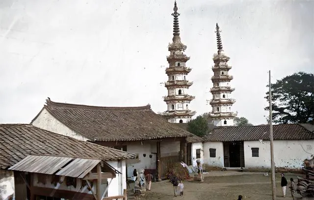 这里两座高塔肩并肩站着,塔身细长,檐角像绣花针,院子里有人挑着担走过,孩子追着鸡跑,生活与古迹挤在一个画框里,谁也不碍谁。
