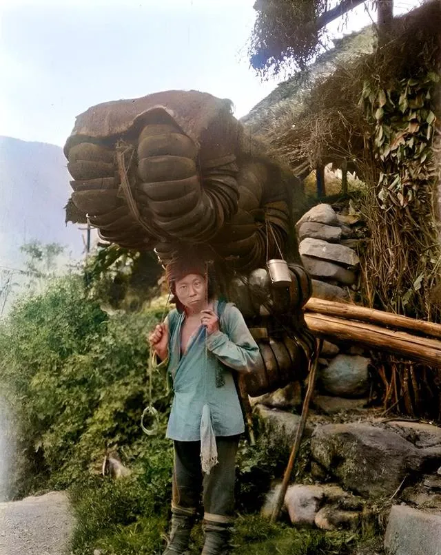 这个汉子背的不是行李,是一大捆皮囊,走山道需要渡河,皮囊一充气就是船,他把绳子挂在肩上,一步一步踩着石头往前,脸上没什么表情,心里只想着天黑前赶到下一个店子,现在我们玩冲锋舟穿救生衣,他只靠经验和天气脸色。